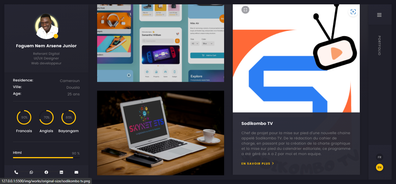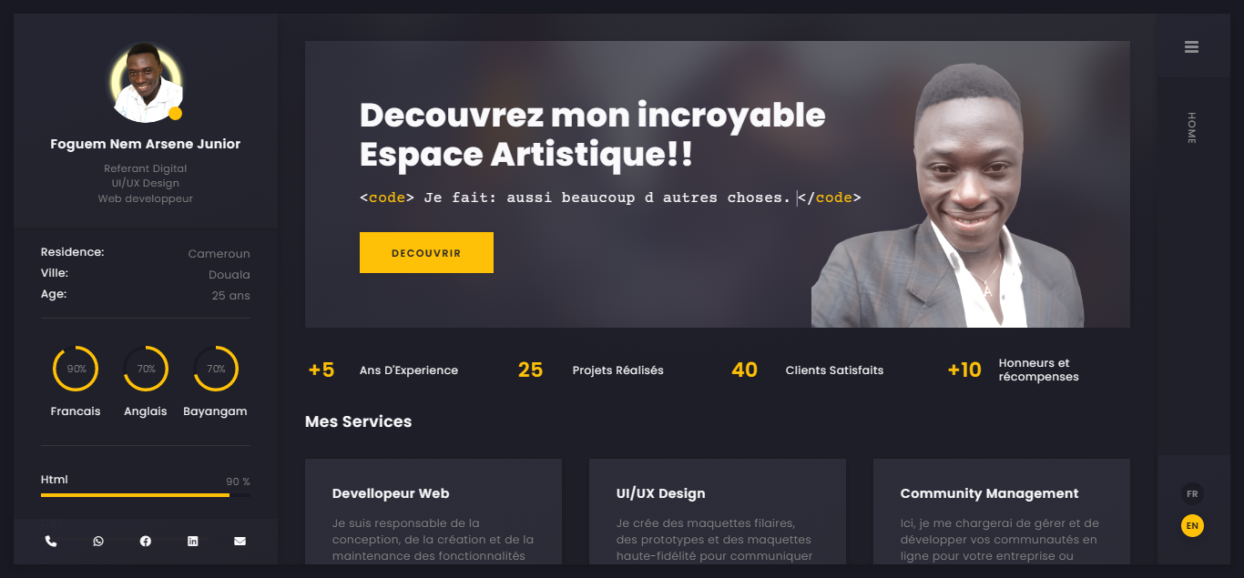 Mon site web portfolio présente mon profil, mes compétences et mes expériences. J'ai travaillé sur un large éventail de projets qui incluent le web design, la création de contenue, la conception de sites web et la gestion et la maintenance d'un projet open source populaire ainsi que de nombreuses autres choses.